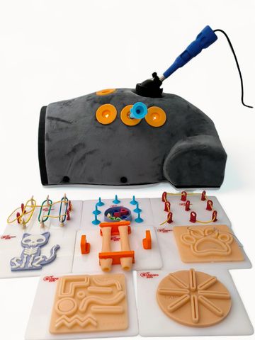 Diseño ergonómico que simula el abdomen de un perro, ideal para la práctica de técnicas laparoscópicas veterinarias.